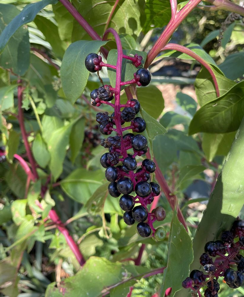 ヨウシュヤマゴボウの実は山鳩とかいろんな鳥が食べに来ます
