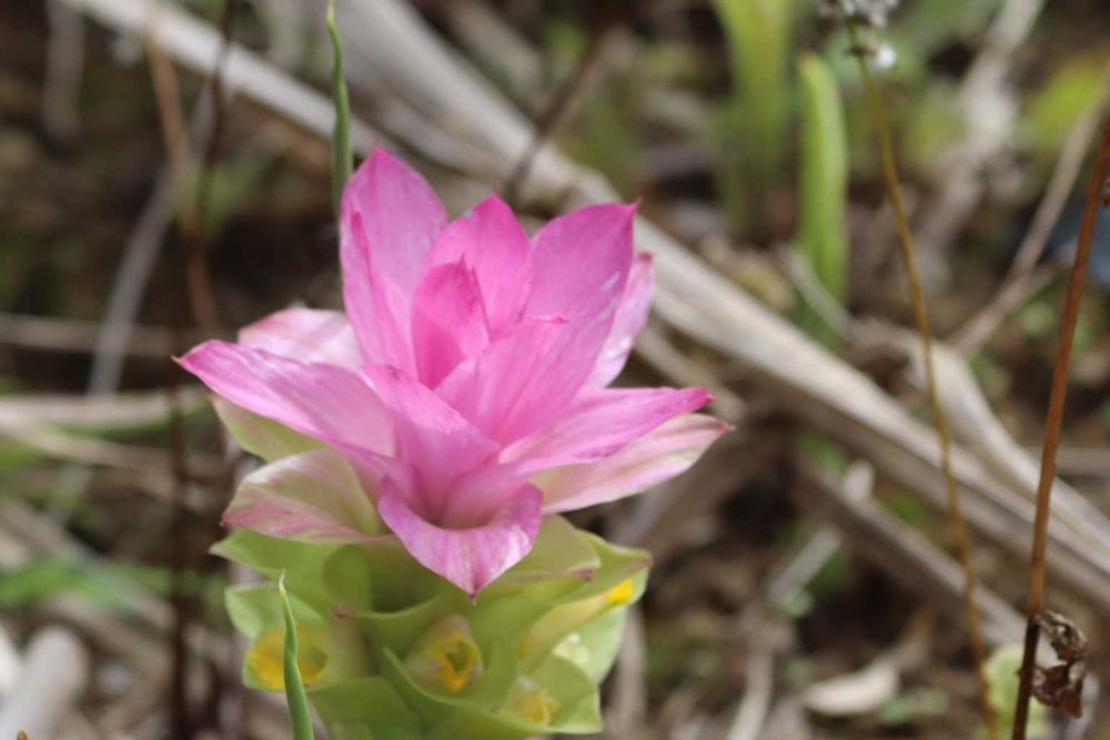 ウコン畑に綺麗なウコンの花が