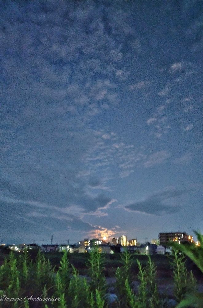 朝起きて見たら、とっても大きなお月様で追いかけたんです😊