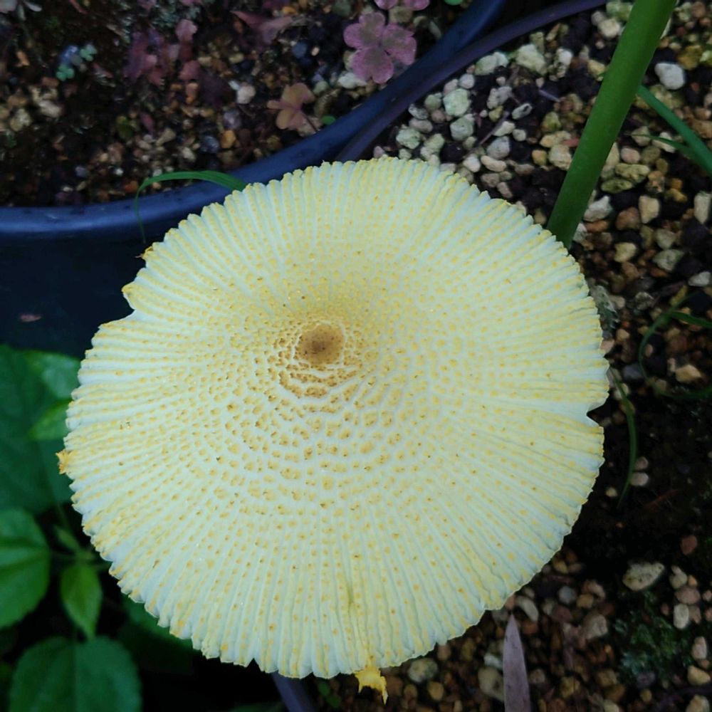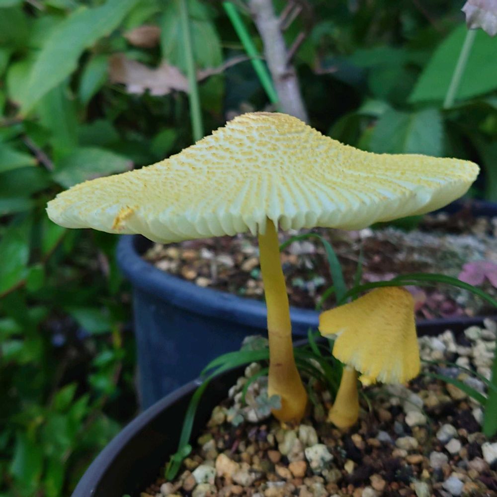 急にニョキって出て来てて🍄🍄黄色が可愛いかったけど、、、毒キノコって思って写真撮って直ぐにのけたけど、「幸運のキノコ」って言われてるらしくって、、のけて良かったのかなぁ〜🤭🤣