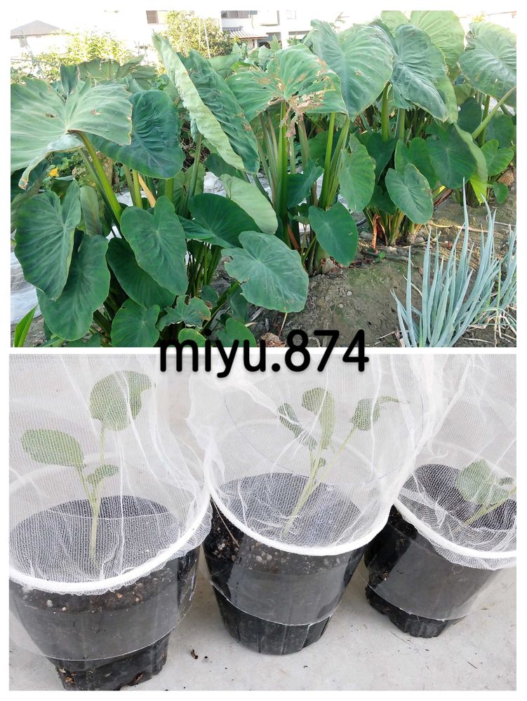 里芋の葉は毎日虫取りしています🐛今年は丈が成長してないから芋のサイズも小さいだろうと思ってますが…