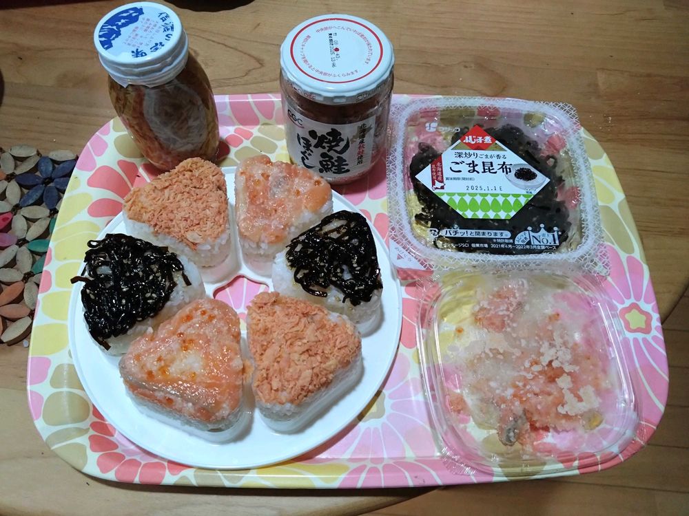 具はサーモン麹漬け、鮭フレーク、ごま昆布🍙