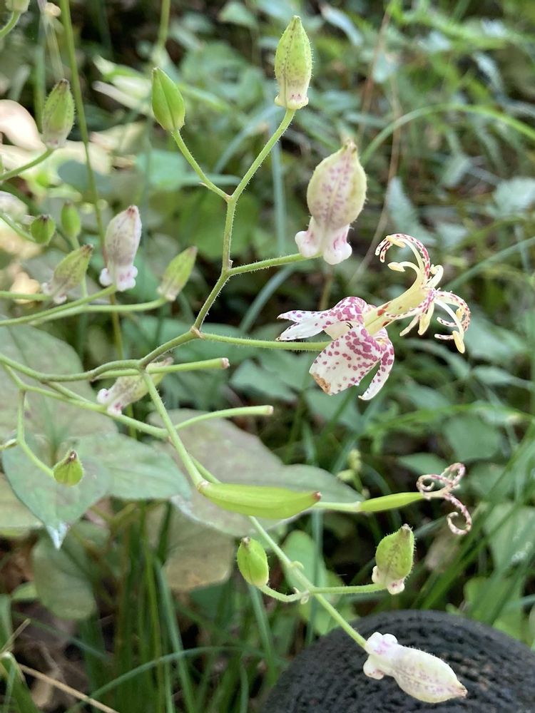 このヤマジノホトトギスは悩ましいですね〜ヤマジノホトトギスにもこんなお花のつき方があるんですね💦