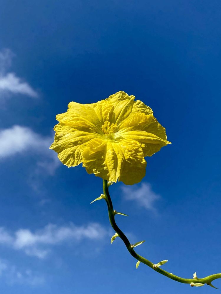 青空にヘチマの黄色いお花良いな〜と😊✨✨✨