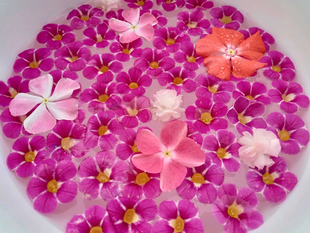 あまりの 花手水の 美しさに 目が👀覚めたわ🤩