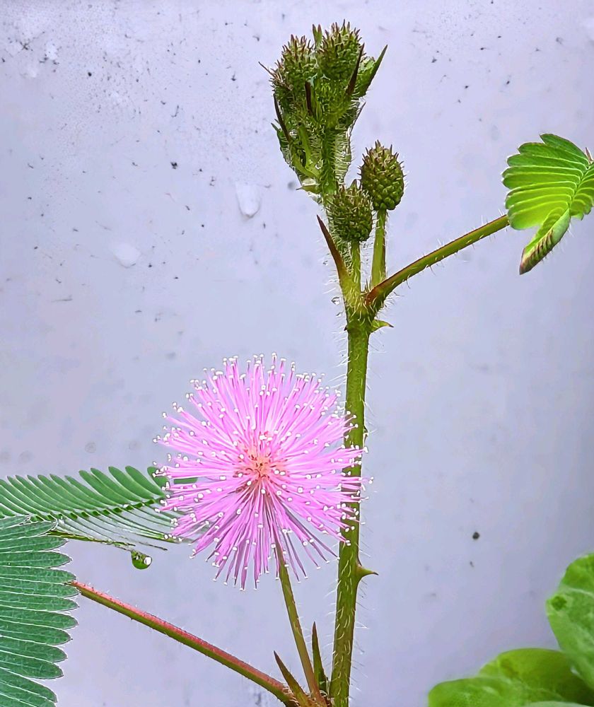 オジギソウの花が初めて咲いたのを見た時 なんて可愛らしいお花なのかと感動したのを思い出しました😄