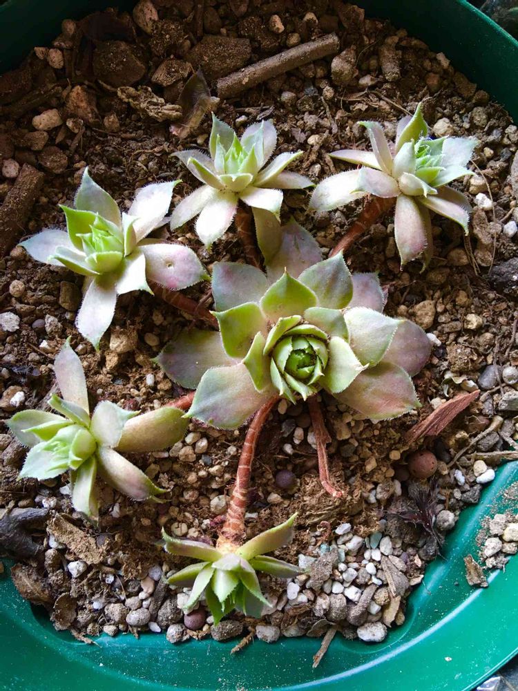 親株にまだ子株が、付いたままなのね。私わ親株から子株外し植えています。どっちがいいかわかりませんが、(o^^o)