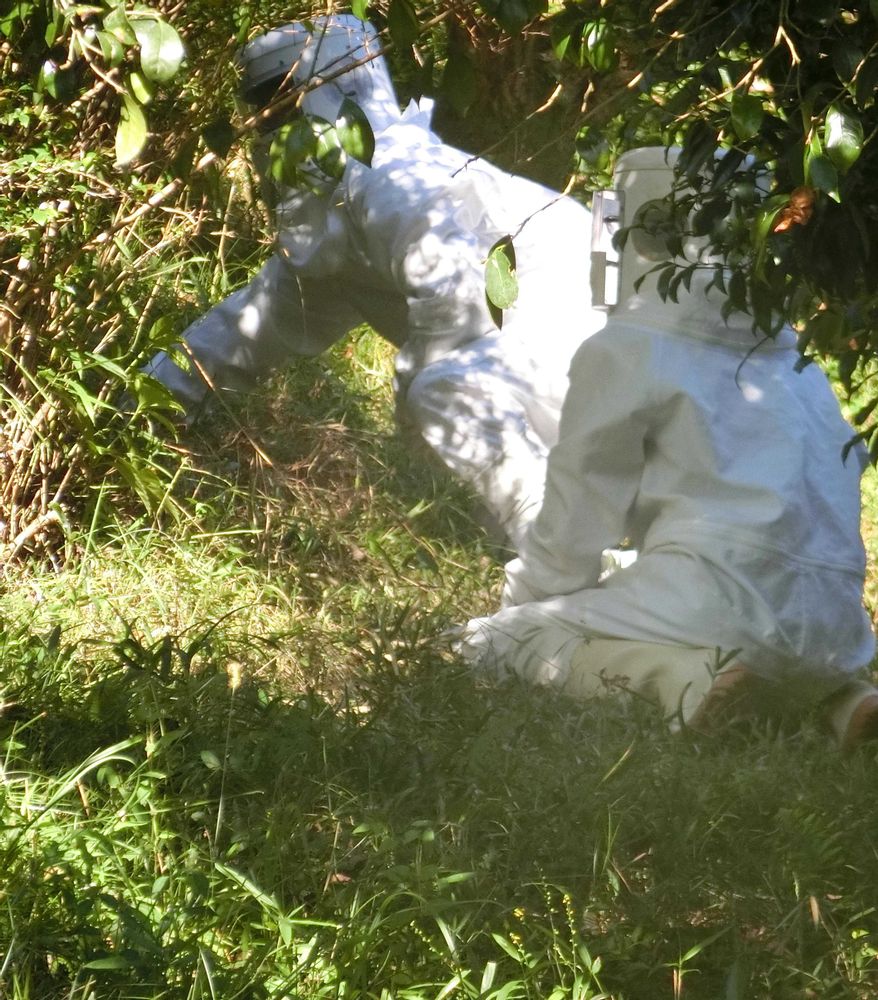 拾いやすいようにと主人が下草刈りをしたら、オオスズメバチが現れました