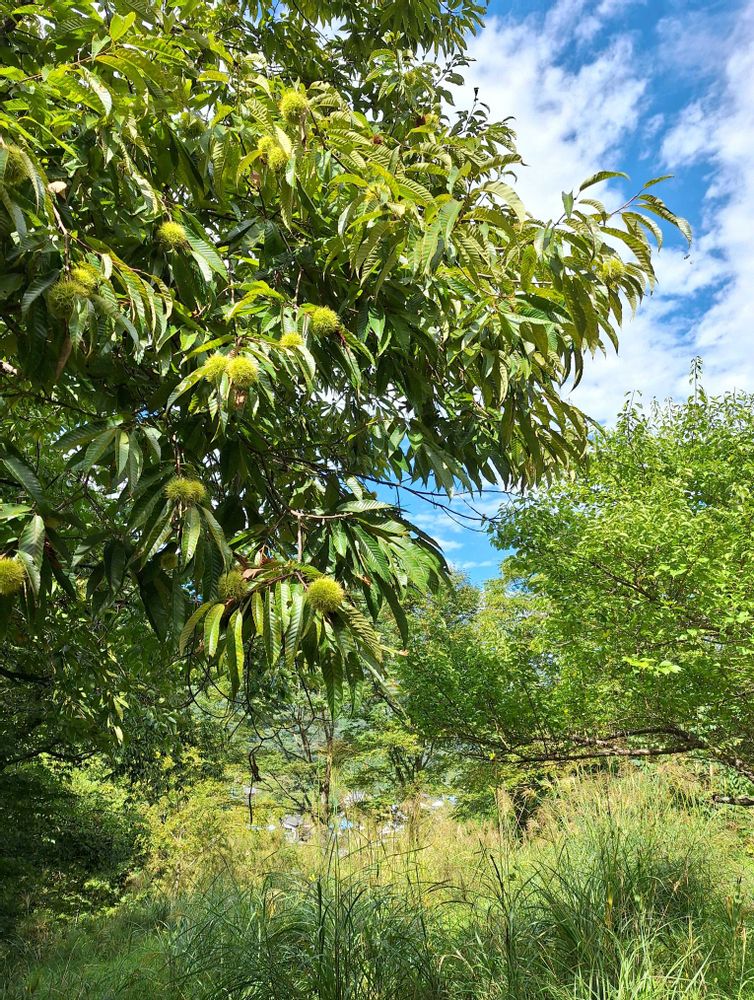 ⑤お寺の近くの道沿いに栗の木があり、毬栗がなっていました🎵(*^▽^*)