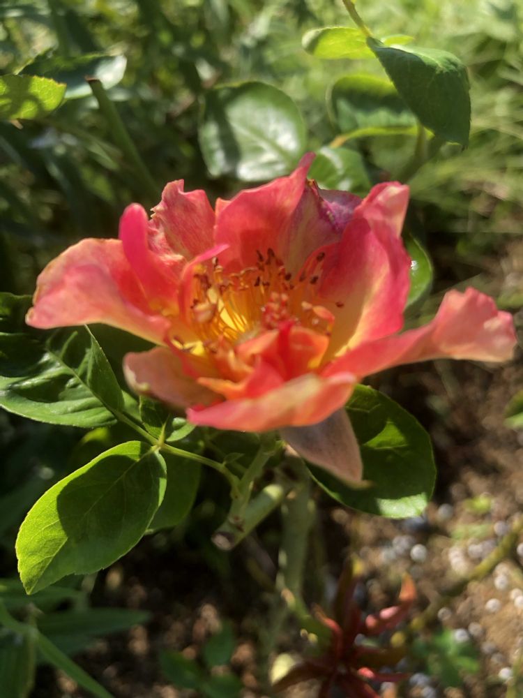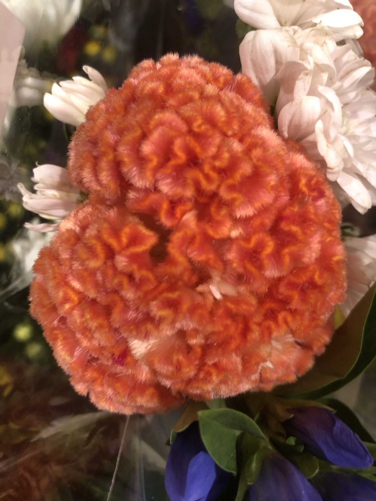 鮮やかな🧡のバラ🌹さんとケイトウさんと