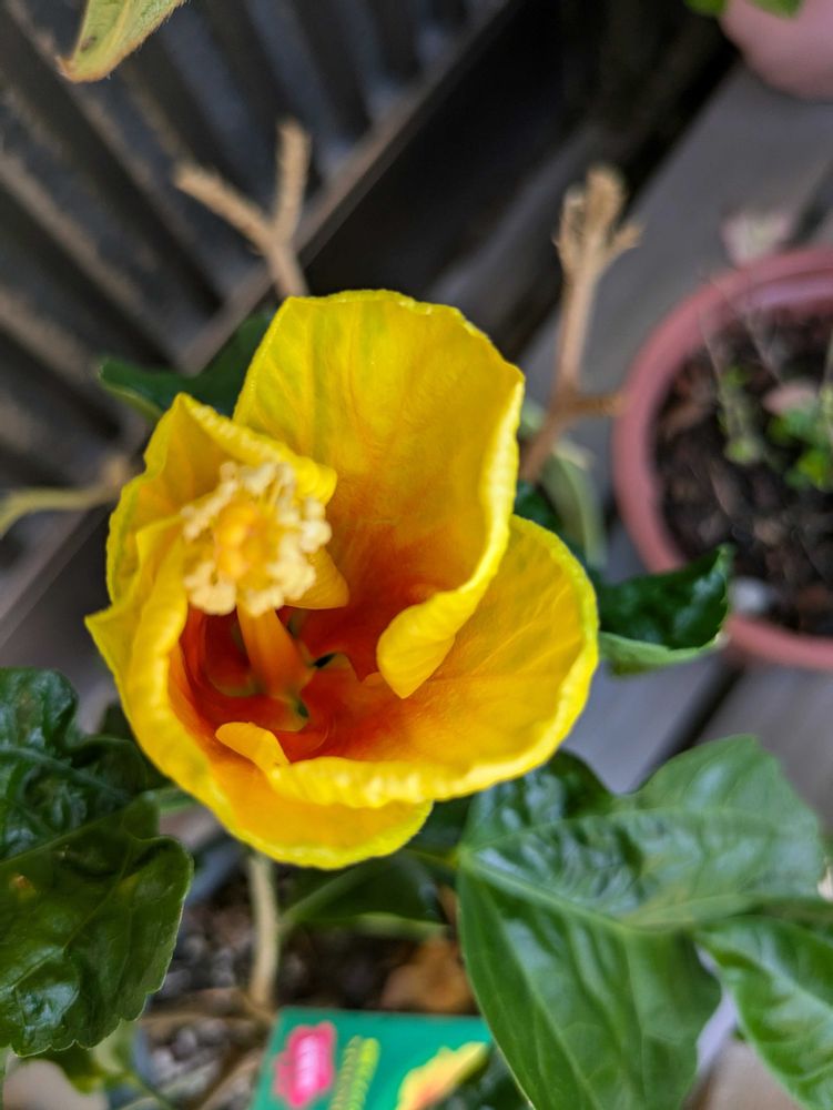赤と黄色のグラデーションが、とても鮮やかで素敵なハイビスカスさんですね🌺✨