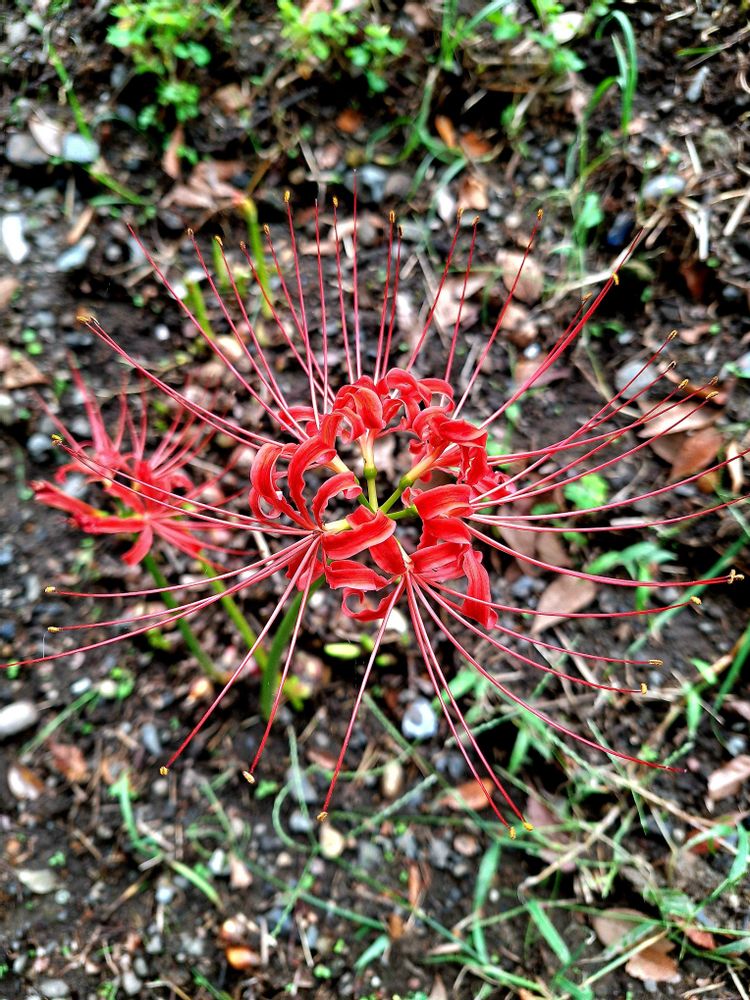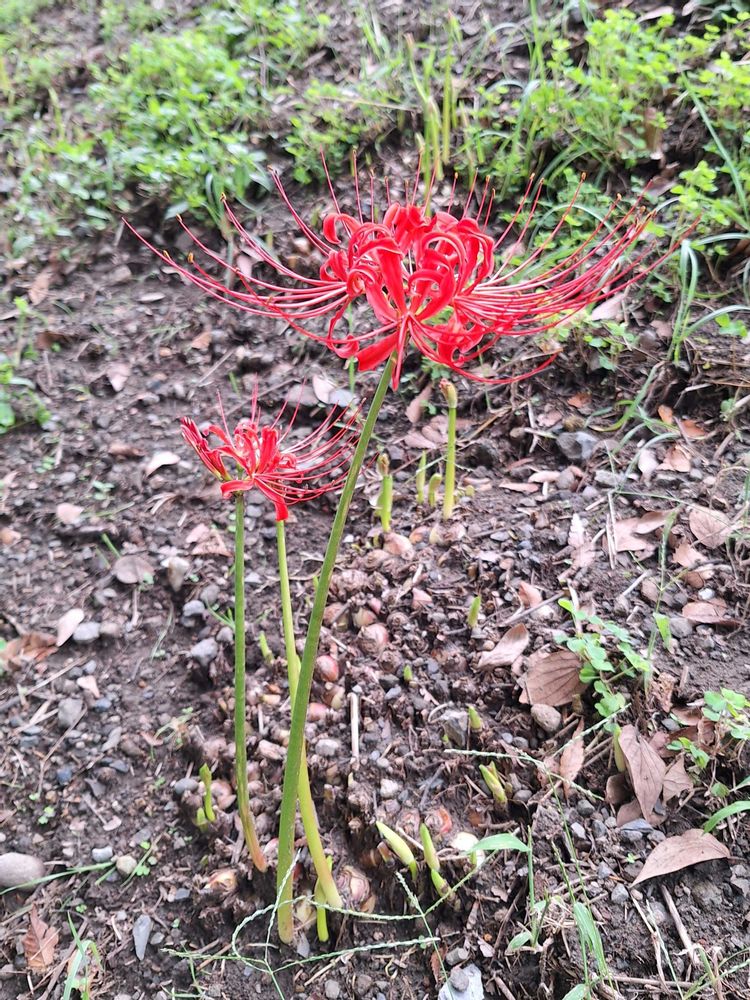 豪雨が何度もあったので、彼岸花が生えている斜面の土が流れてしまったみたいです。😱