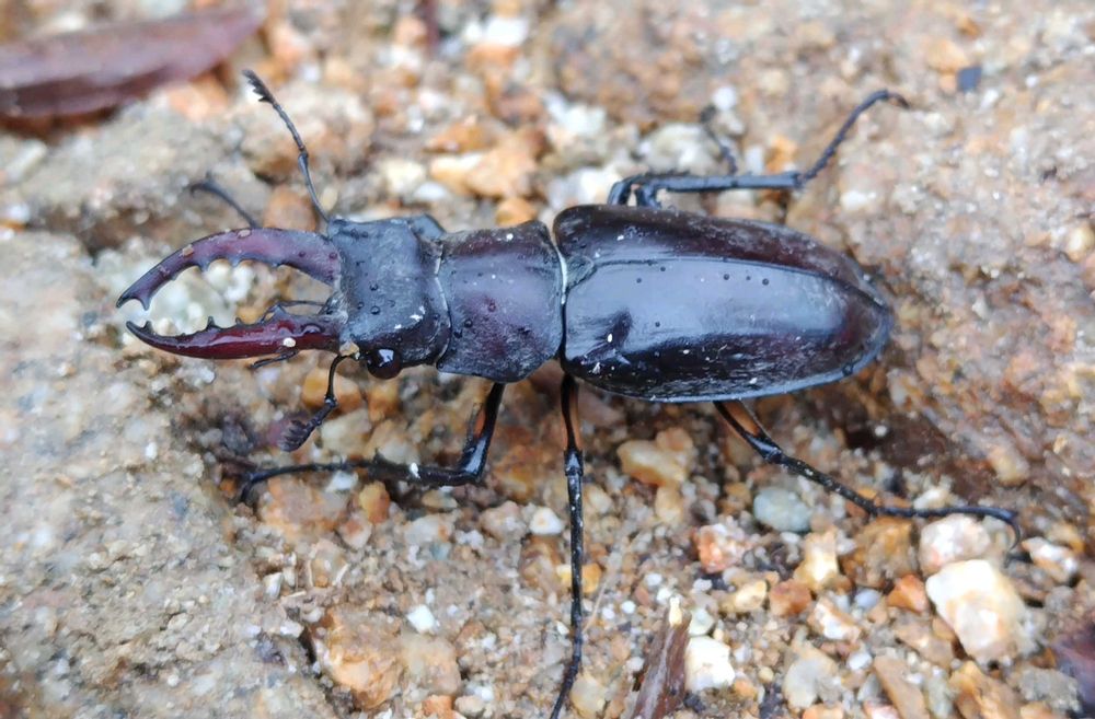 ノコギリクワガタとミヤマクワガタの雑種?!珍しいのでは!!帰宅後調べると栄養不足のミヤマクワガタでした〜。