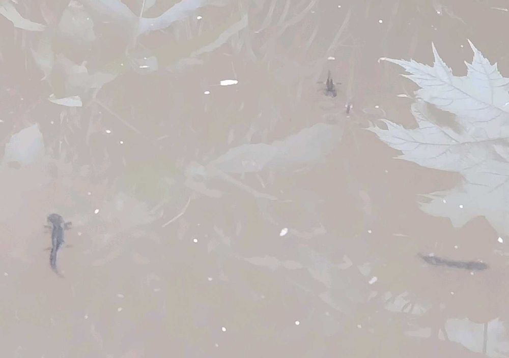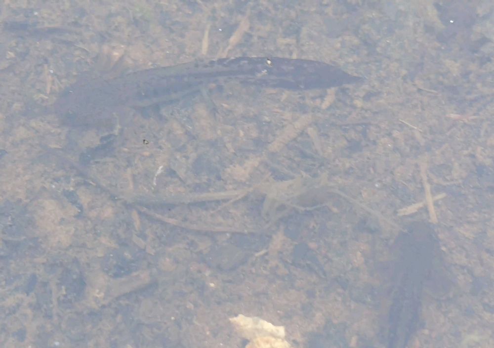オタマジャクシ?と思いきや、四本足。ウーパールーパー似のクロサンショウウオ。