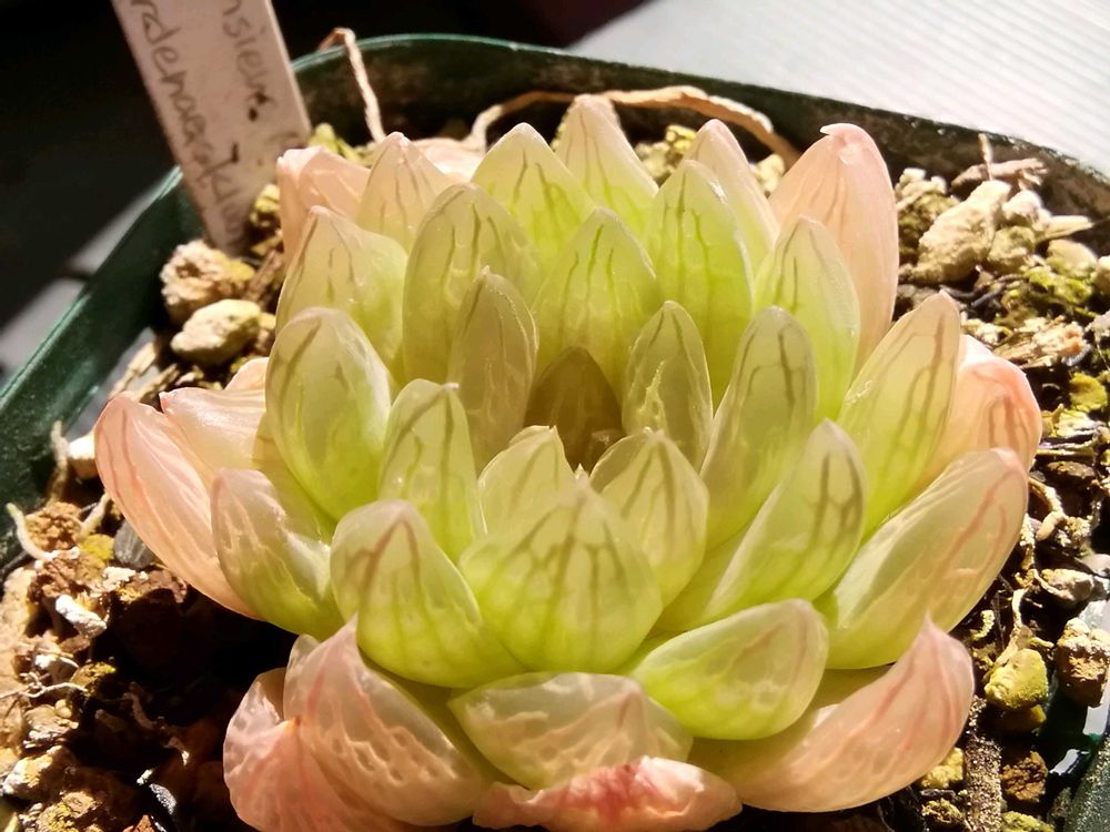 昔、ハオルチア集めだした時に斑入りのシンビ(京の華錦)の葉焼けで赤くなってるやつを喜んで買って何週間かで綺麗な緑になって驚いたのを思い出しました。