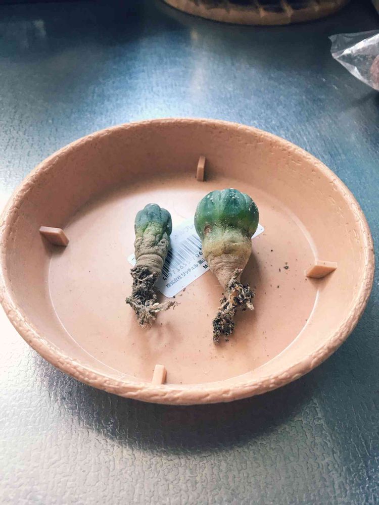 兜丸と鳥羽丸です。水の与え過ぎか根腐れして殆ど成長してません。試しに下半分ほど切って見ました。育つんでしょうか?