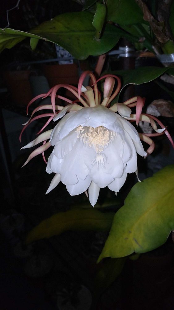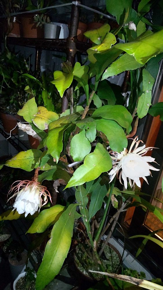 月下美人咲いた〜。昨晩夜9時半頃。これ以上待ちきれなくて激写。