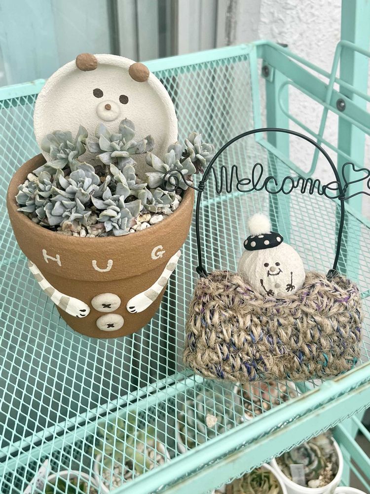 ハグ鉢、編みかご鉢可愛い💕