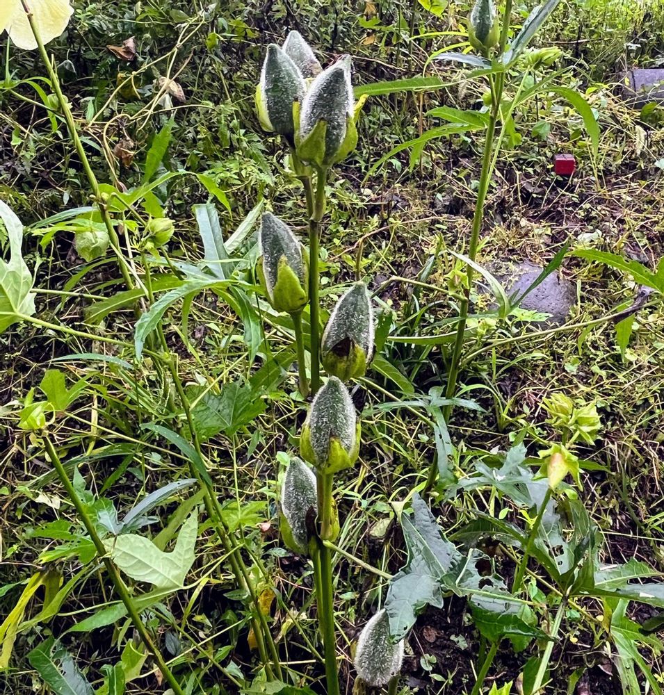 トロロアオイのお花と実です😆👍🌸🌸🌸 花オクラとも言う位なので、お花はオクラと凄く似ています😆👍🌸✨ オクラより大きいお花ですけど😆👍✨🌸🌼🌸🌼