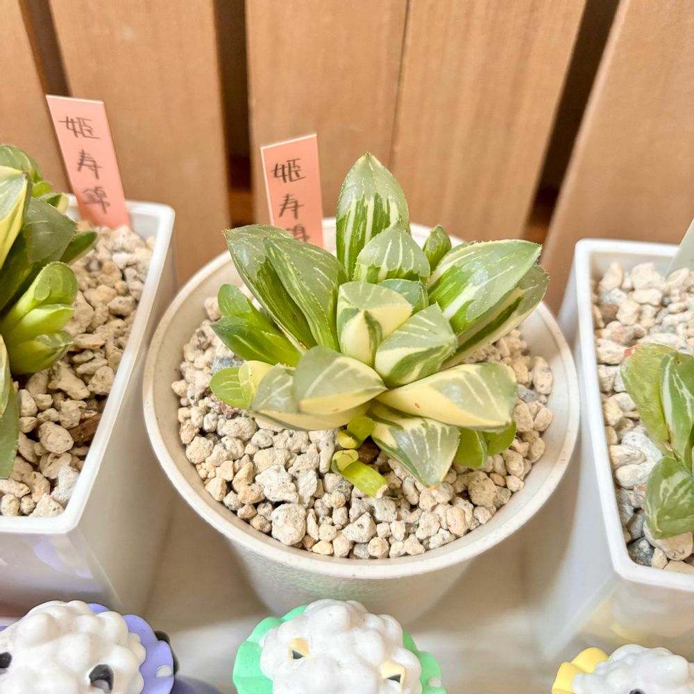 るる農園さんからお迎えしたハオルチア姫寿錦2つと、メルカリでお迎えしたハオルチア宝草錦🪴
