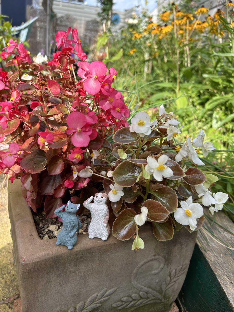 ①②ベゴニアさんのお花の下で敬礼ニャー😺