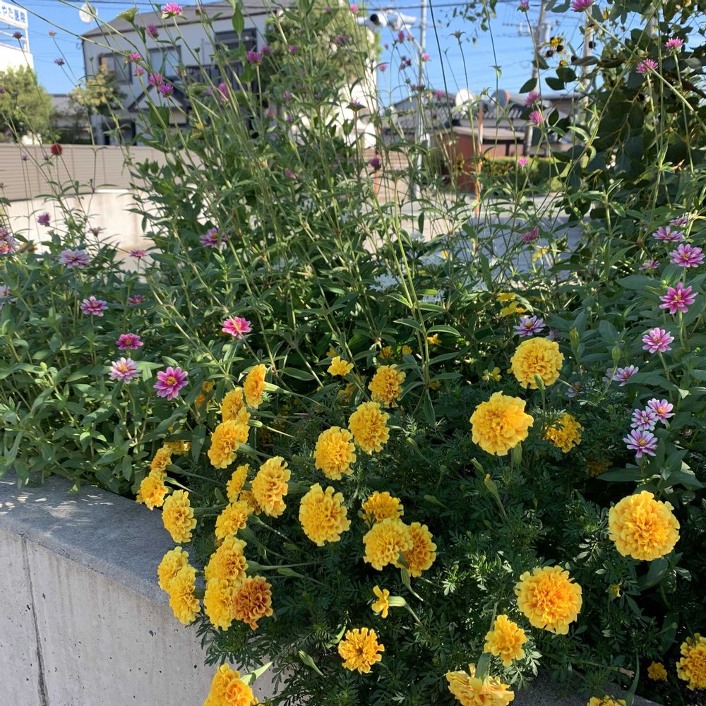 ようやく猛暑日から解放されました🥵 猛暑を乗り越えたマリーゴールドやジニア、ペンタス、ニチニチソウ。
