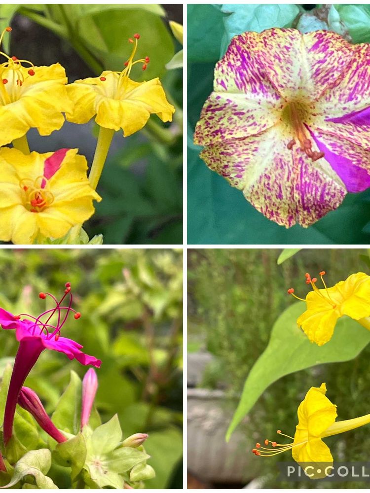 3,4枚目2段咲きオシロイバナの苞の中に黒い種が🎶