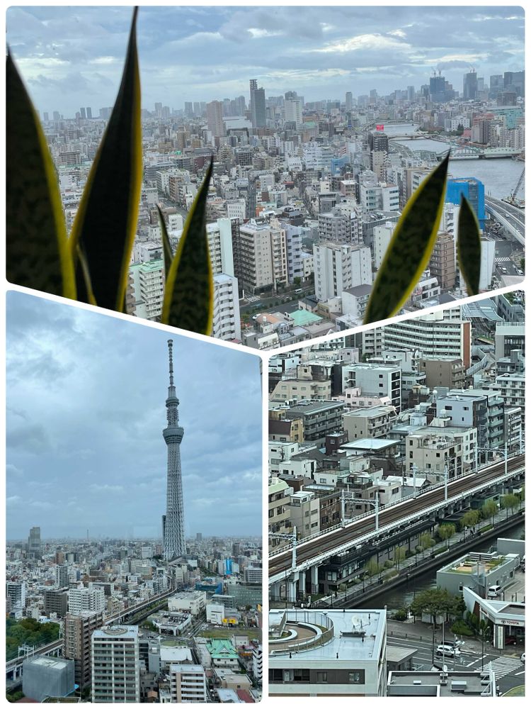 ③お昼はアサヒビールビルのジョッキ🍺の泡の所で、スカイツリーを眺めながらのイタリアン🇮🇹
