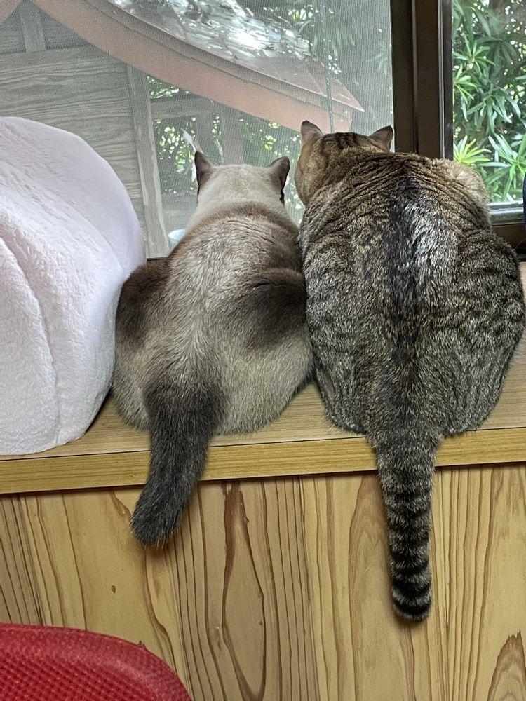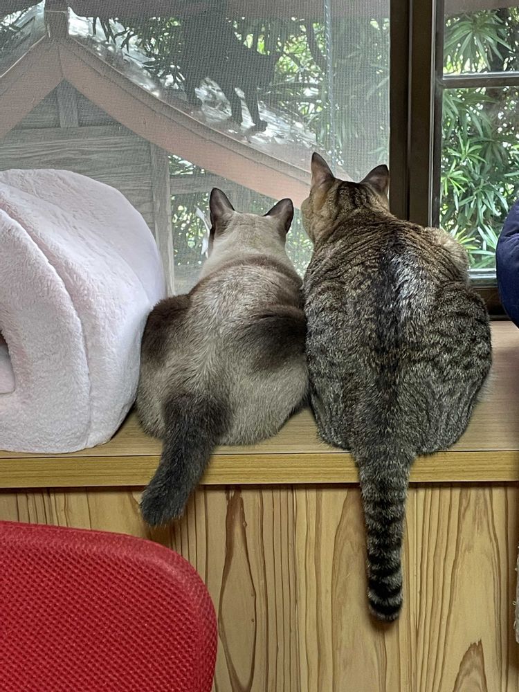 チャムちゃんとあずきちゃんは、野良の子猫🐈⬛を見ていたんですね😸😸