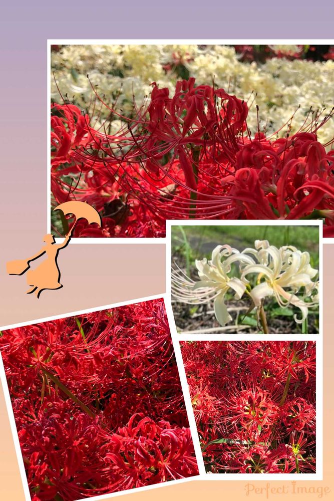 彼岸花もピンクとかもありますが、赤と白がぴったりかな?
