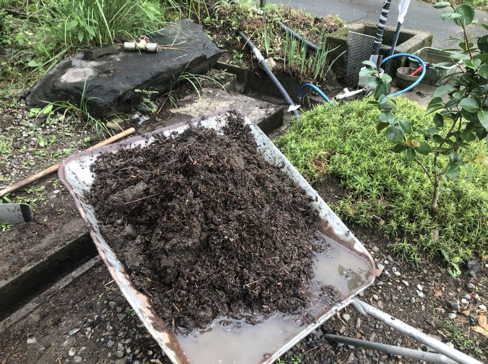 昨日の雨で水場の枡に杉のカスが一輪車2杯分溜まってました😭