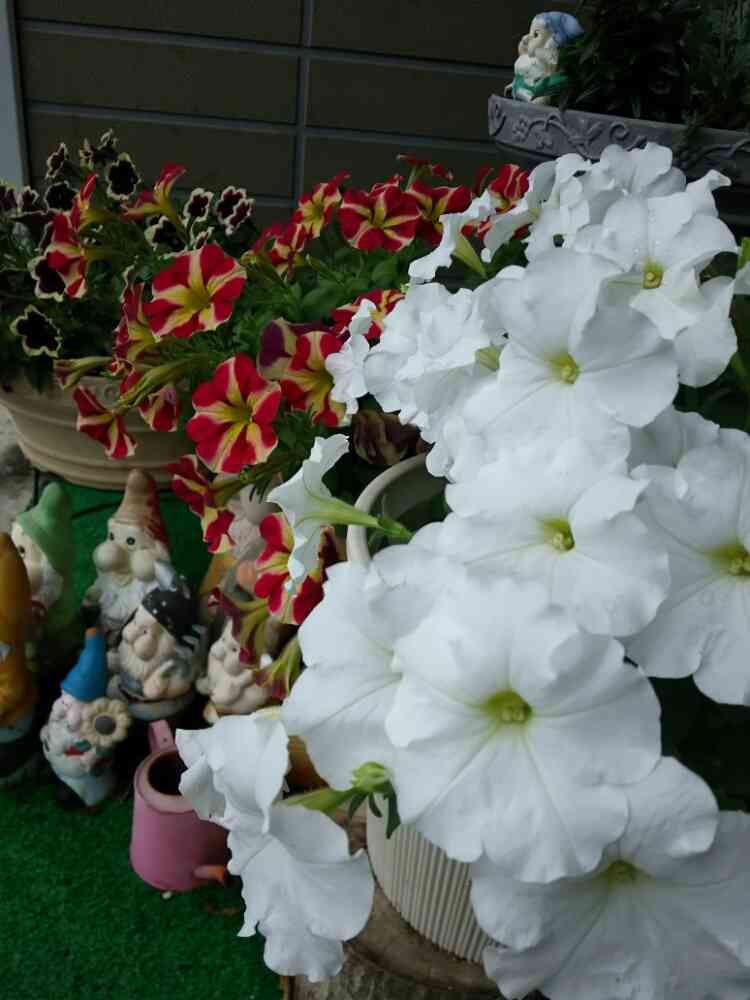 玄関先のペチュニア・サフィニアも暑さに一息つけて気持ちよさそう😄