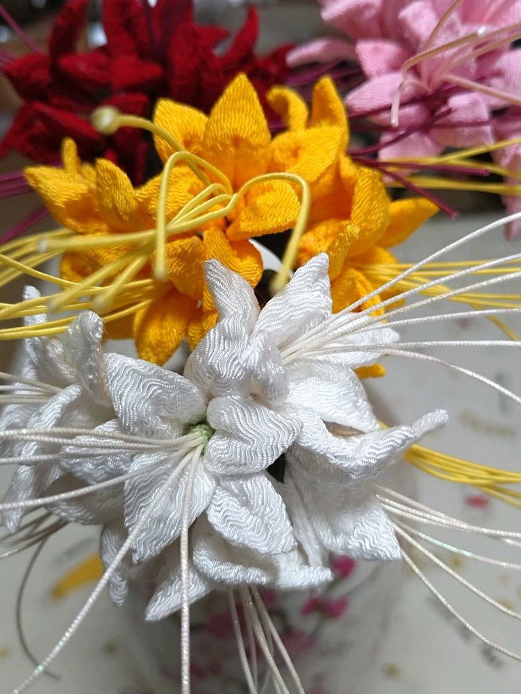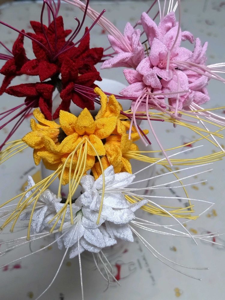私がお世話になっている美容室のお客様で、ちりめん細工をされる方がいらして😊年間通して季節、季節のお花をアイディア生かして手作りして、美容室で販売されています😊