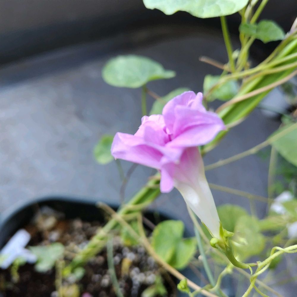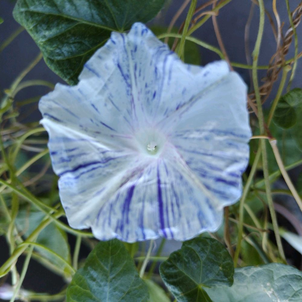 もう…終わったと…思ってました〜条斑絞り朝顔さん…🤍💜🤍💜🤍🌿咲いてきました…一花!