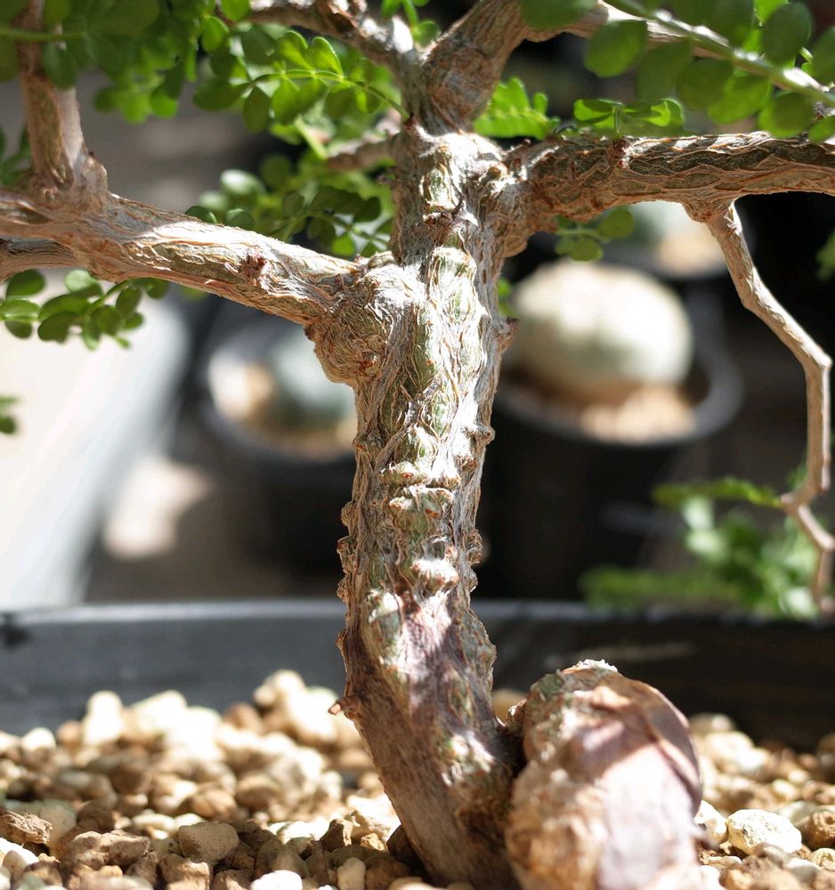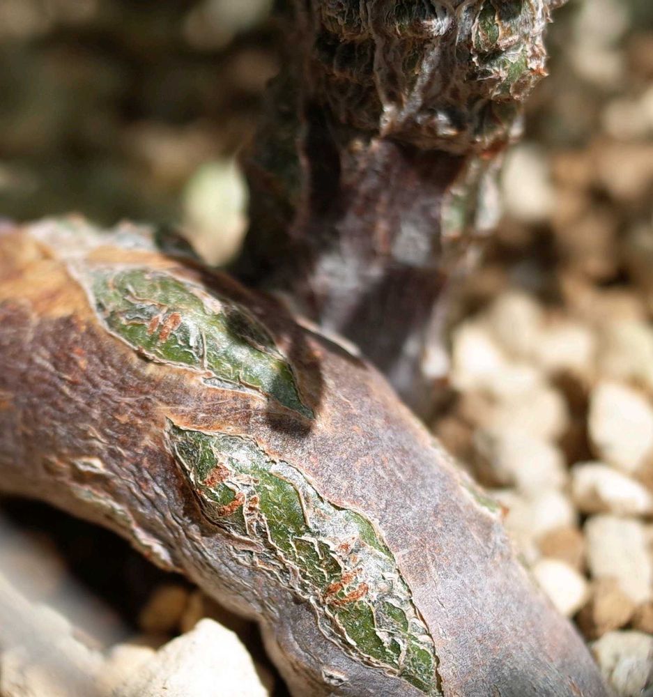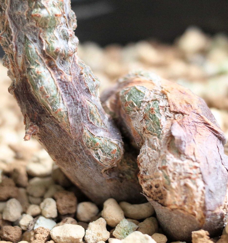 元々根だった茶色いところも緑の樹肌が割れ出てきて幹になってます。