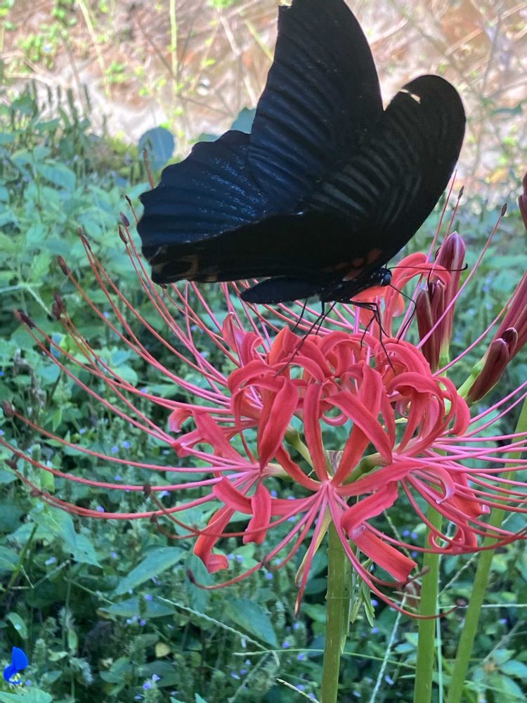 それでも咲いているところを見つけ、写真を撮ってると、、近くにいたおじちゃん2人に「あんた、彼岸花が珍しいの⁈」と。