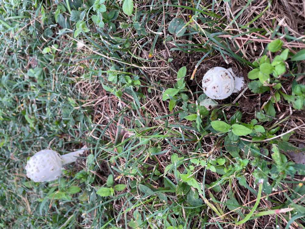 回答ありがとうございます🙇♀️小平霊園の芝生に生えていました。シロテングタケ、オオシロカラカサタケ、両方の画像を沢山見比べてみましたが、似てますね。違いを見分けるポイントを知っていれば、もっとそれが分かる写真が撮れたのですが😓