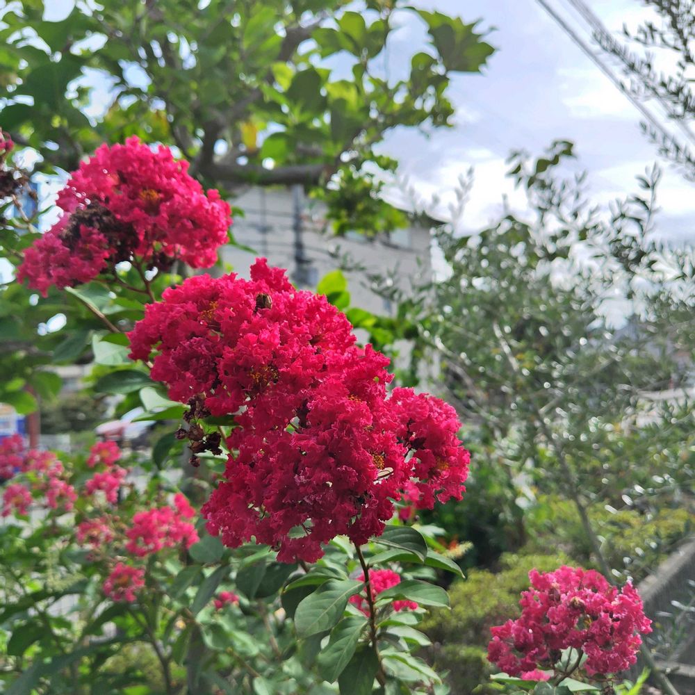真っ赤なサルスベリ💖bikkuriする…紅い色…❤️2️⃣…😯😲