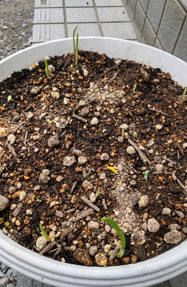 🧄ニンニクの芽だしです。😃今年の春出来たもの、薄皮外して植えると早く出てきます。😃☺️
