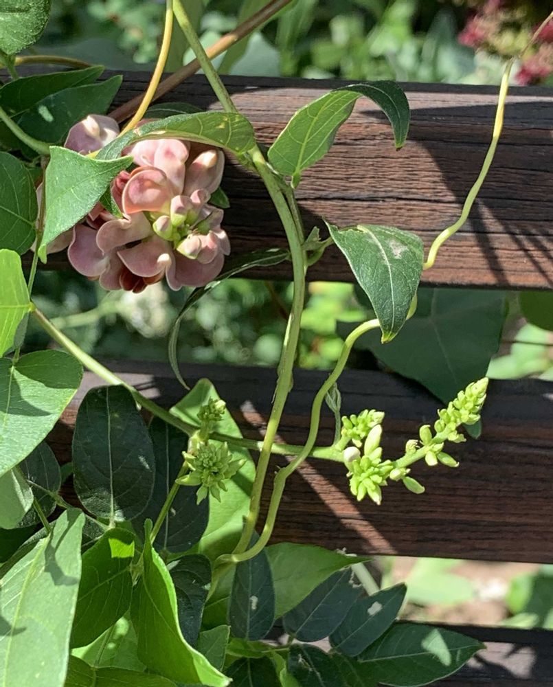 アピオスは濃いピンクと淡いピンクが重なって、上から見ると淡いぴんく、下から見ると濃いピンクが見えて素敵なのです。