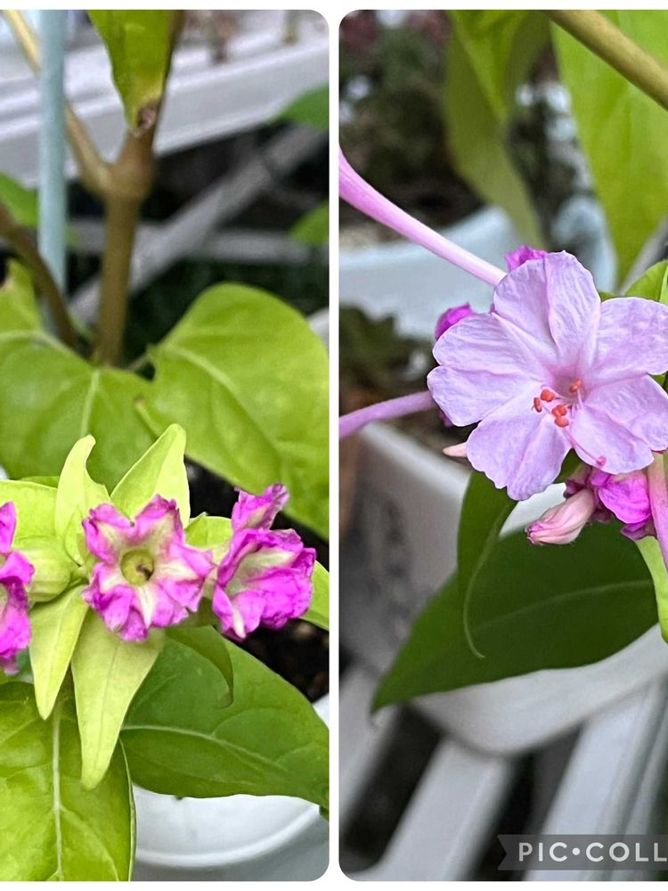 2枚目2段咲きオシロイバナ微笑み返しローズ色が薄くなりピンクに😄