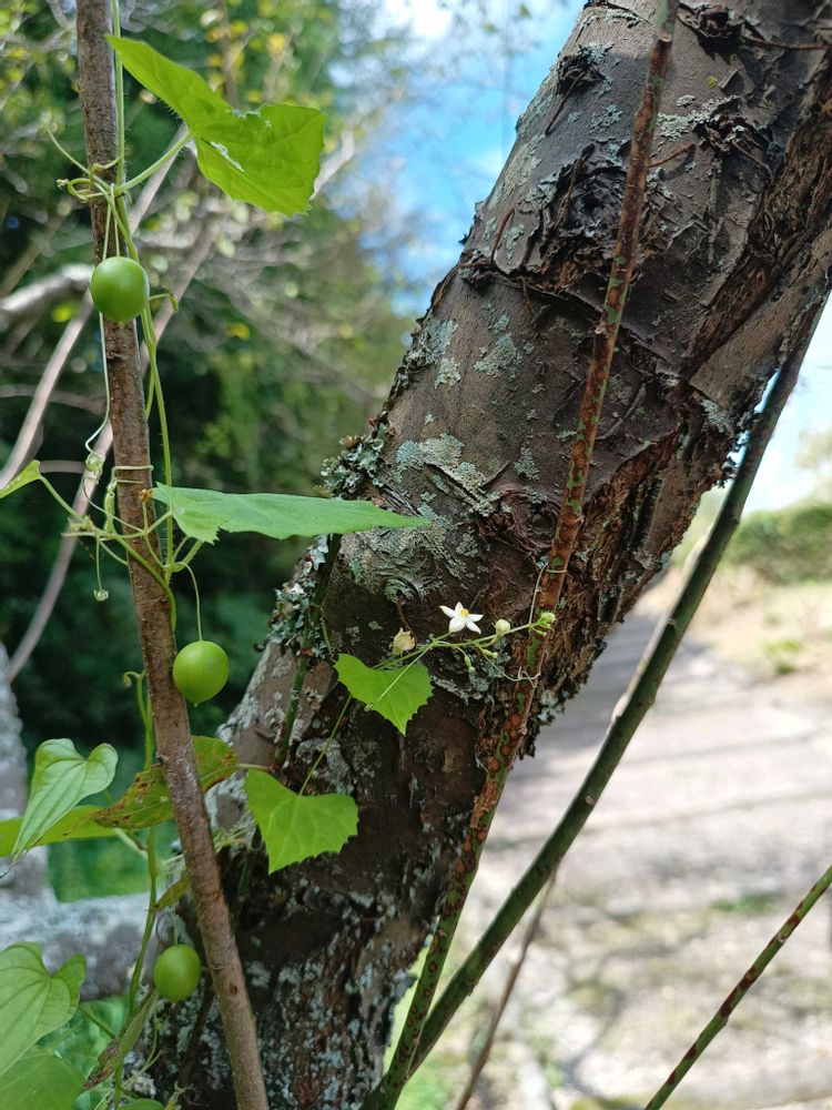 以前桜の木に絡みついたスズメウリに雌花も咲いていたのを撮った🤳🏻んだけど、ここでは雌花は咲いたのはなかったんです。