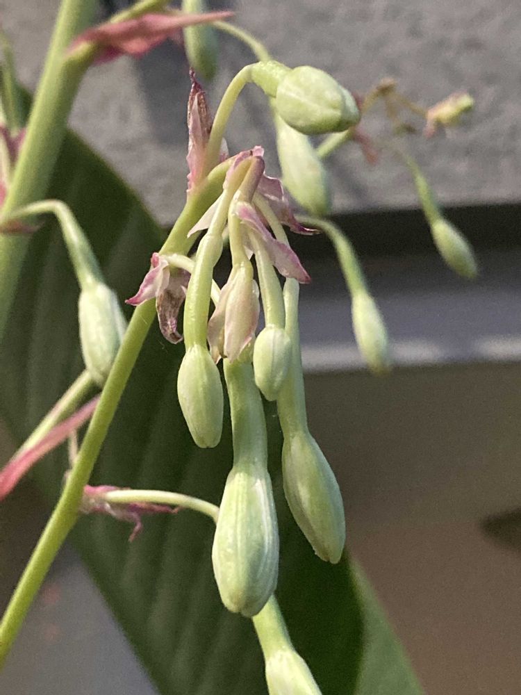 本種はべスコルネリア属の中でも小型のタイプで、花は濃桃色の苞の下から長さ4~5cmの淡緑色の筒状の花が吊下がるように着き、咲き進むと濃桃色に変わるので、カラフルになります🌼🌸