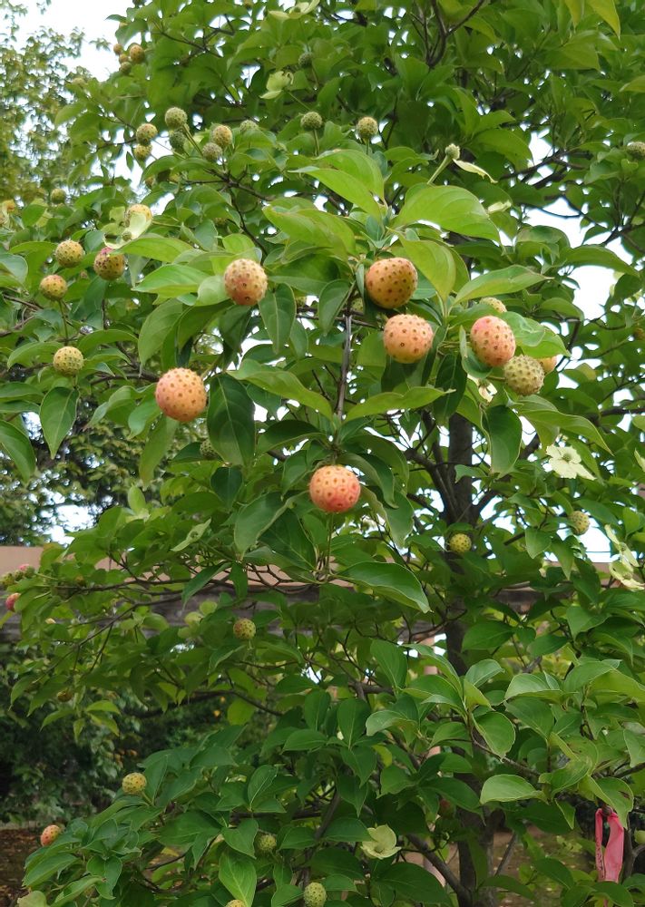 ヤマボウシの品種によるのか、湿度の関係か、実家の山にあるのは、皮も柔らかくて食べられたのに、我が家のは、ジャリ、ジャリと、口の中に残ります。
