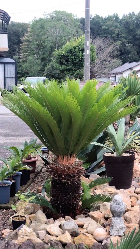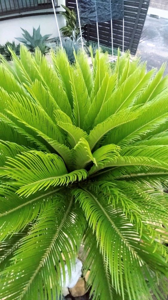 今年の蘇鉄は、葉っぱが3回に分けて出ました。最初と2回目の古い葉っぱは全て切って3回目の葉っぱだけにしました。まだ少し柔らかいです。