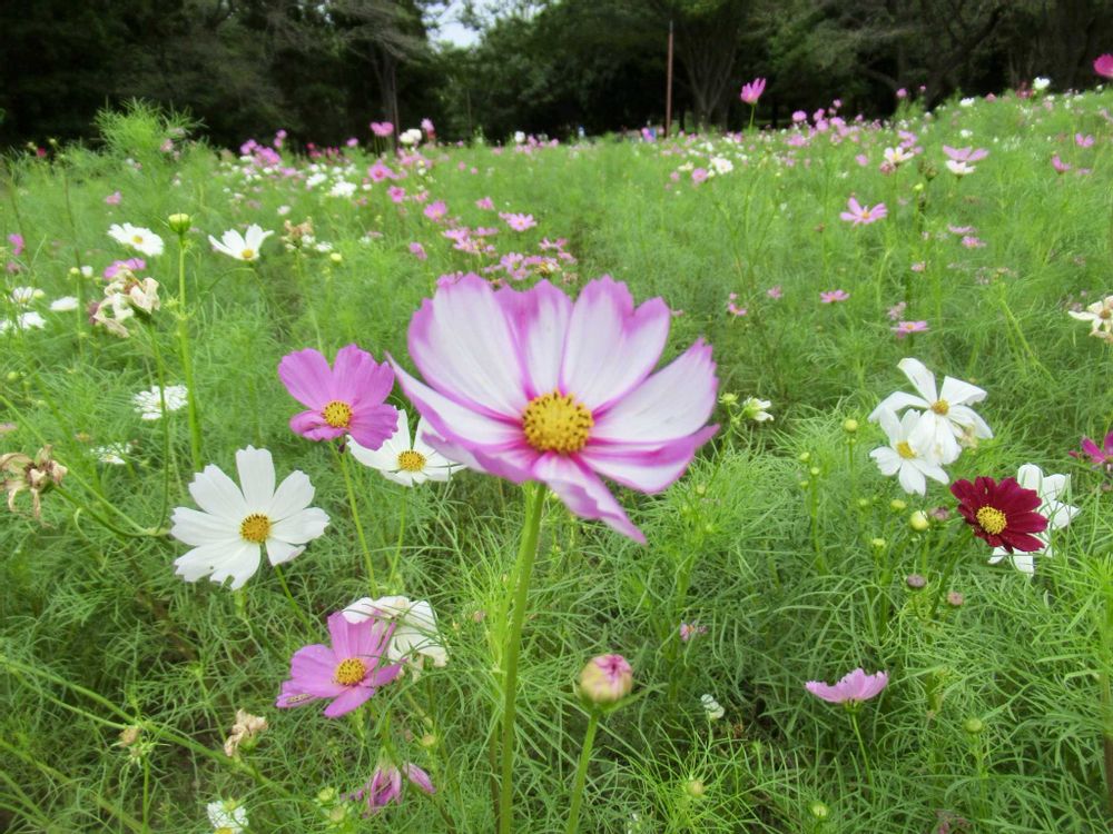コスモスは広い場所に、似合いますねえ🌸🌼