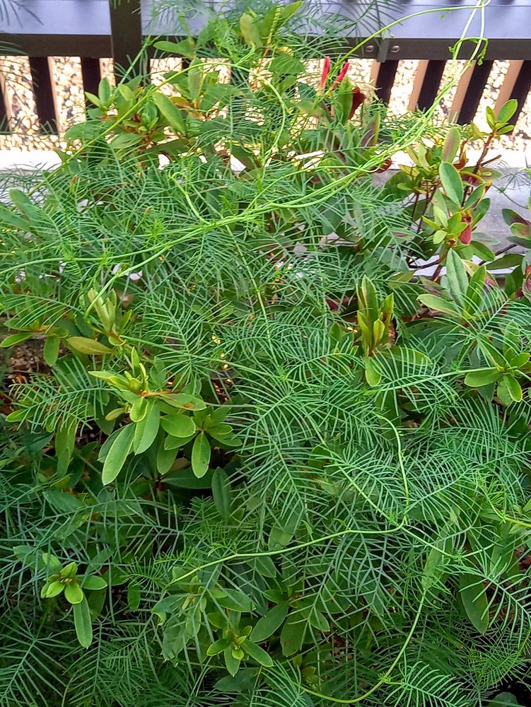 それから後に発芽したルコウソウが、すくすくと伸びて、久留米ツツジに覆い被さってしまいました。