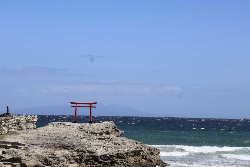 岩礁の上の赤鳥居です