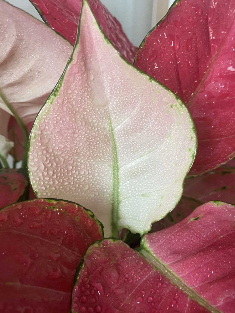 今朝もアグラオネマの新葉を拝みました。期間限定の桃色の葉っぱが可愛すぎる😍