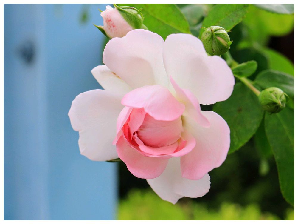 淡いピンクがほんのりとのる白系のバラはホントに愛らしいです(。˃́⌔˂̀。) 🎶